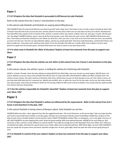 Explore the theme of morality in Macbeth. Select two minor characters and examine their contributions to the play. Explore the reasons why Macbeth needs to have Banquo killed. Examine what Shakespeare sets up in Act 1 that remains important throughout. Identify the main literary devices in Macbeth. Describe the role that the supernatural plays in Macbeth. Examine how Shakespeare takes freedom altering the sources of his plays. Describe the changes Macbeth undergoes from the start to the finish of the play, macbeth essay topics. Explain how Shakespeare uses Macbeth themes in other plays.
